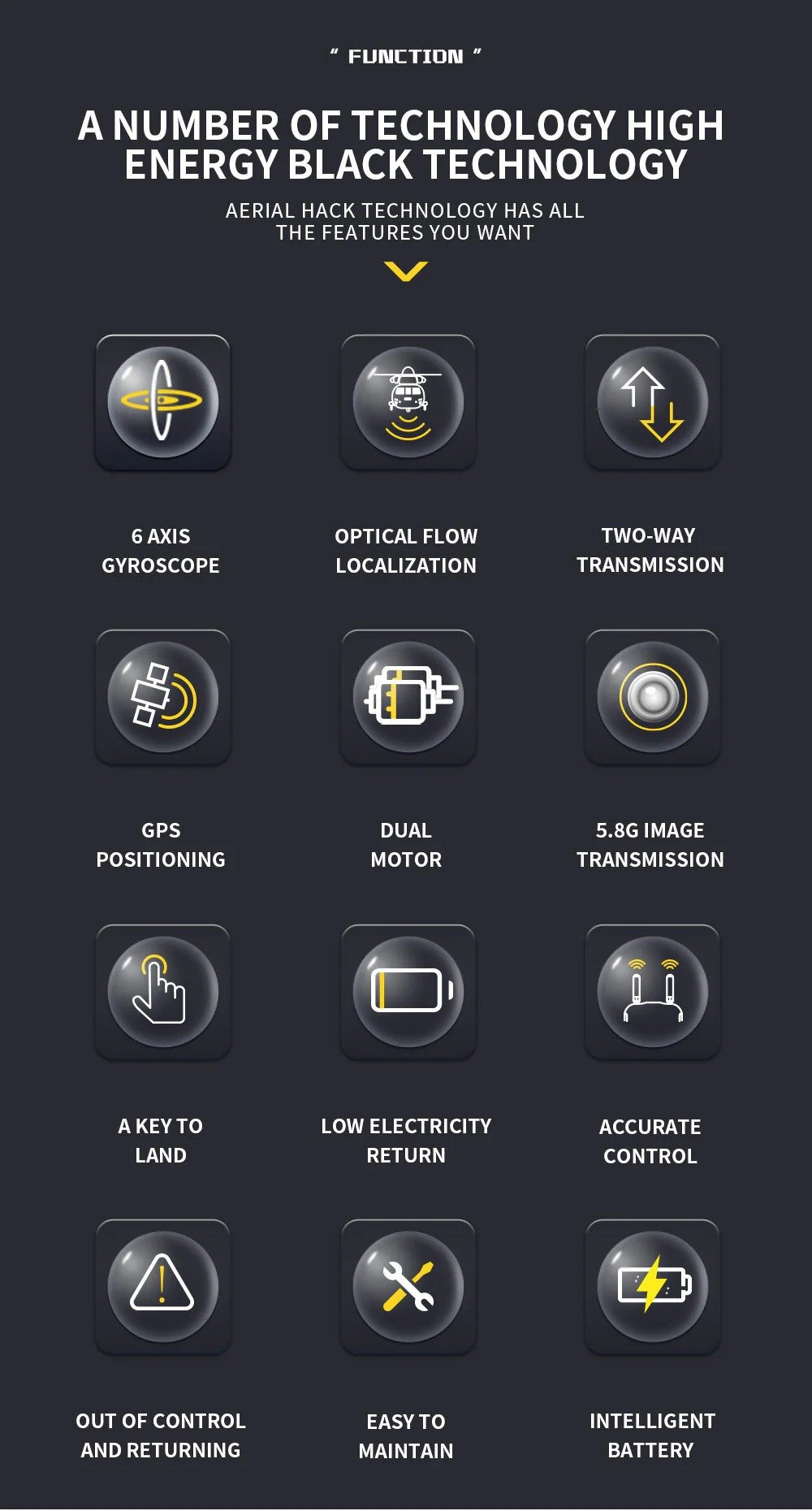 6. Adopt 2.4GHZ communication protocol, Intelligent flight control, equipped with GPS module, visual module and pressure fixed height module under compass module;